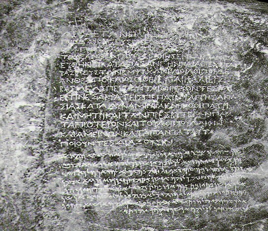 (கல்வெட்டு – கிரேக்க மற்றும் அராமைக்(Aramaic) மொழியில்)