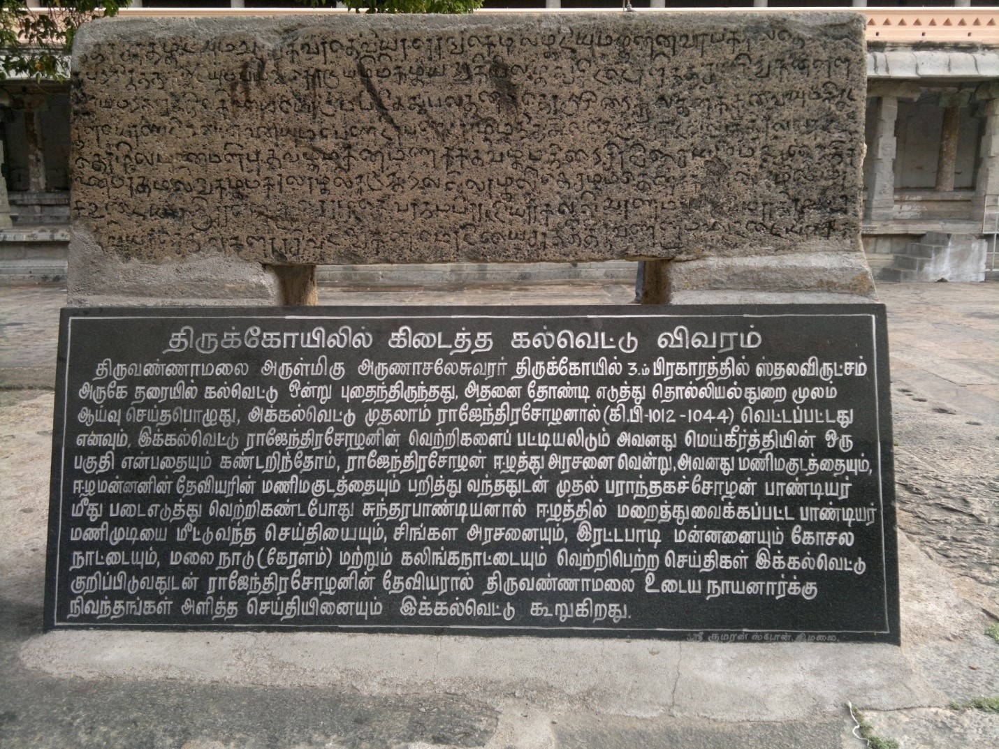 அடுத்த சோழப் பேரரசனான ராஜேந்திரன் காலம் வரை அது ஈழத்தில் ரகசிய கண்காணிப்பில் மறைந்திருந்தது. இது திருவண்ணாமலை அருணாசலேஸ்வரர் ஆலயத்தில் புதை பொருள் ஆராய்ச்சியாளர்கள் சமீபத்தில் கண்டெடுத்த கீழ் காணும் கல்வெட்டினால் உறுதி ஆகிறது: