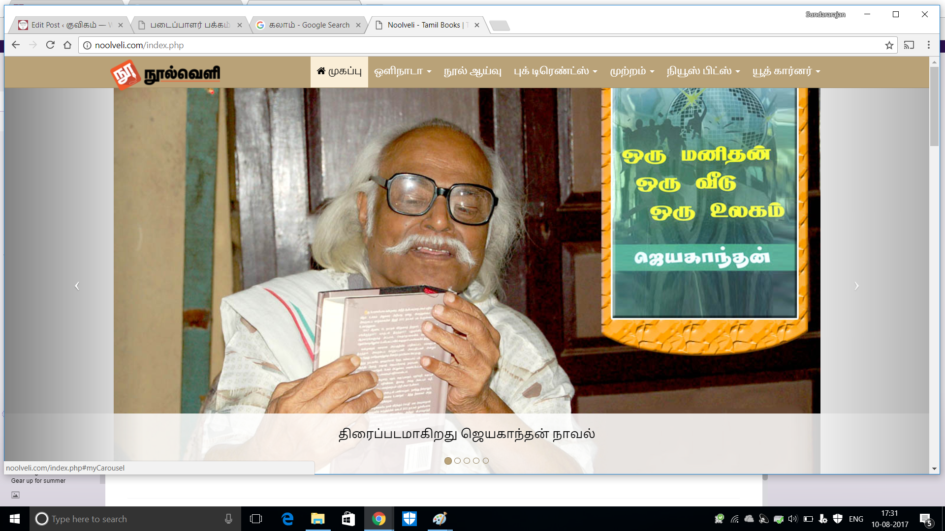 http://noolveli.com/என்ற இந்த இணையதளத்தில், இலக்கியவாதிகளின் பேட்டிகள், விவாதங்கள், நுால் விமர்சனம், புதிய வரவாக உள்ள நுால்கள், மே லும் குழந்தைகளுக்கான புத்தகங்களின் விபரங்கள், புதிய எழுத்தாளர்களுக்கான வழிகாட்டுதல்கள் உள்ளிட்ட பல்வேறு தகவல்கள் இடம்பெறும்.