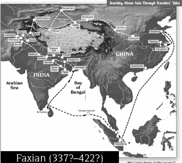 பாஹியான் பயணங்களைப்பற்றி அறிந்திருந்தான்.