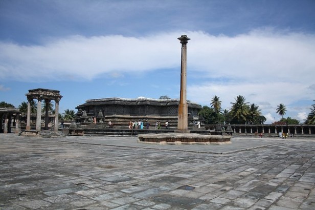 கோவிலின் பிரகாரத்தில் மேடையின்மேல் ஒரே கல்லில் உருவாக்கப்பட்ட கருங்கல் தூண் ஒன்று நிறுத்தி வைக்கப்பட்டிருக்கிறது. அடித்தளம் இல்லா இத்தூணின் உயரம் 42 அடி. அஸ்திவாரம் இல்லாமல் புவி ஈர்ப்புச்சக்தியால் நின்றுகொண்டிருக்கிறது! இது கிபி 1414ல் விஜய நகர சாம்ராஜ்யத்தின் மன்னர் தேவராயர் காலத்தில் கட்டி இந்தக் கோவிலில் சேர்க்கப்பட்டது. தூணின் பாரம் மூன்று பகுதிகளில் மட்டுமே தாங்கியிருக்குமாறு அமைக்கப்பட்டிருக்கிறது. தூணின் அடியில் எஞ்சியுள்ள பகுதியில் ஒரு காகிதத்தை நுழைக்கும்படியான இடைவெளியோடு அக்காலக் கட்டிடக்கலை வல்லுநர்களால் கட்டப்பட்டிருப்பது அதிசியமே!!!