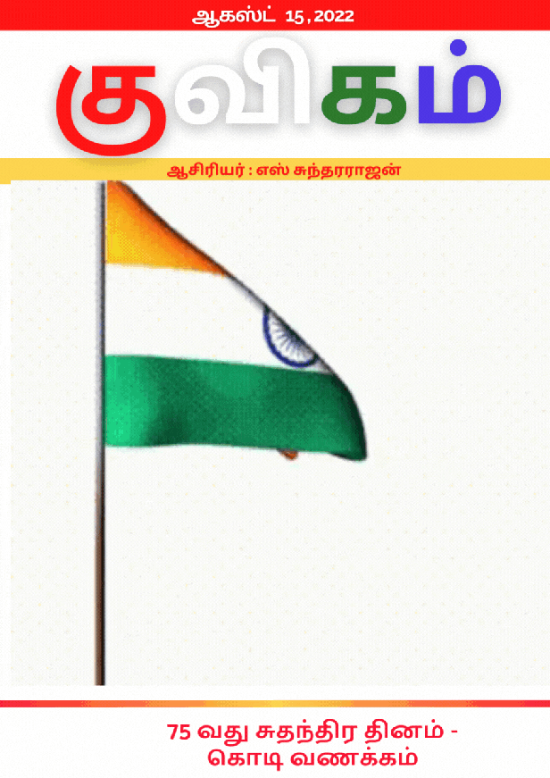 Uncategorized அட்டைப்படம் – ஆகஸ்ட் 2022 Date: August 15, 2022Author: sundararajan 0 Comments அனைவருக்கும் இனிய சுதந்திர நாள் நல் வாழ்த்துகள்!! Rate this:Share this: Click to share on WhatsApp (Opens in new window) WhatsApp Click to share on Facebook (Opens in new window) Facebook Click to share on X (Opens in new window) X Like Loading...