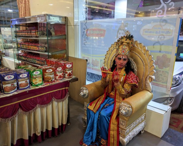 அன்று காலை அடையாறு ஆனந்த பவன் கடைக்குள் சீடை முறுக்கு பலகாரங்கள் வைத்துள்ள பகுதியில் அழகான கிருஷ்ணர் உட்கார்ந்து இருந்தார்.