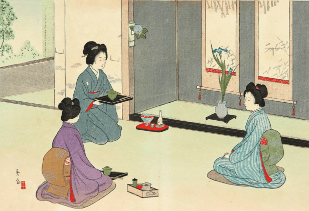 இது 1500-களில் நடைமுறைக்கு வந்ததாம். ஜப்பானியர்கள் சீனர்களிடமிருந்து பசுமையான தேநீர் (Green tea) அருந்துதலை தங்கள் வழக்கமாக ஏற்றுக் கொண்டதை அடுத்து ஜென் புத்த (Zen Buddha) மதத்தின் நம்பிக்கையாக இந்தத் தேநீர் சடங்கு உருவாயிற்று. 1521-1591 வரை வாழ்ந்த சென் நோ ரிக்யு (Sen no Rikyu) என்பவர் ஜப்பானின் தேநீர் சடங்கைத் துவக்கி வைத்த முக்கியமான ஒருவராவார்.