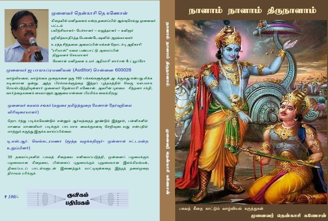 அதற்கு கண்ணன் காட்டும் கீதையின் ஸ்லோகங்களையும், அவற்றின் பொருளையும் விளக்கி, சிறப்பான நூலாகத் தந்திருக்கிறார் தென்காசி கணேசன்.