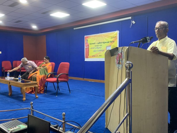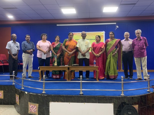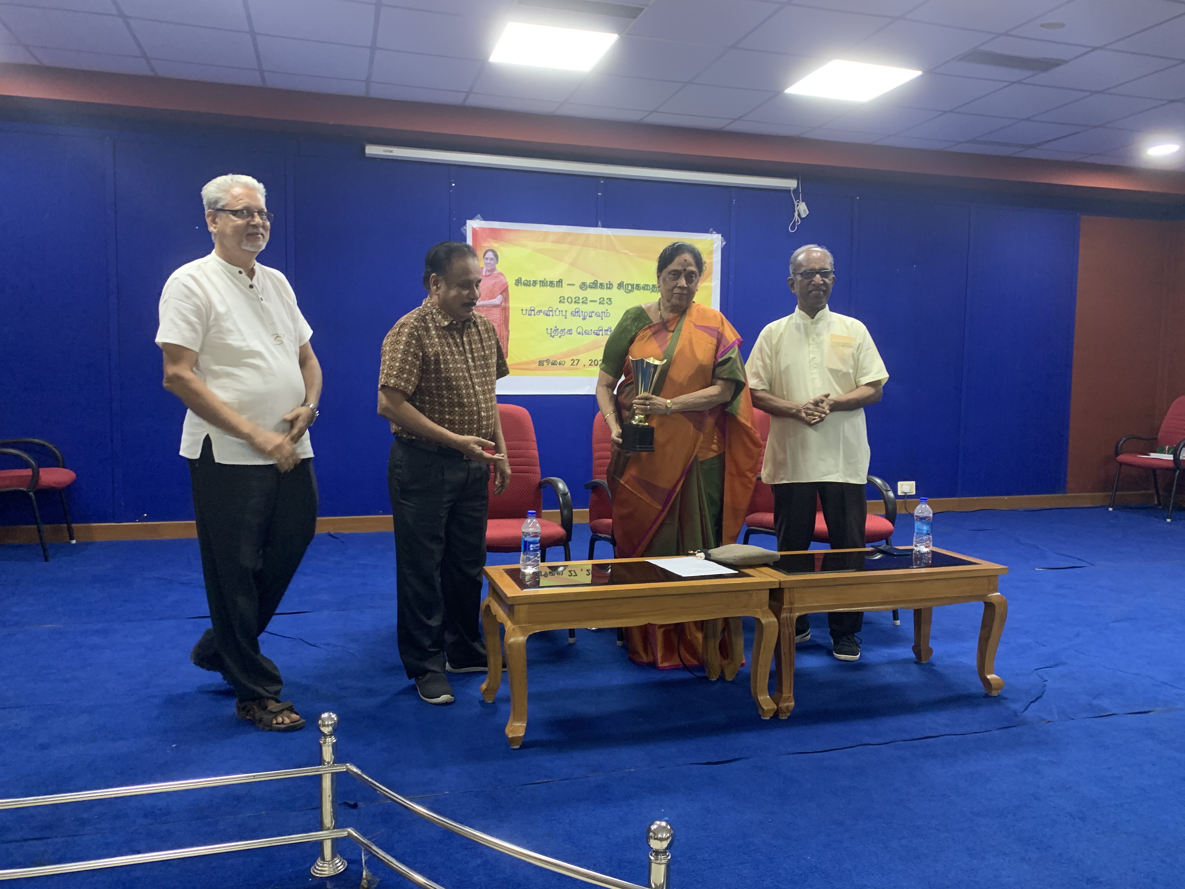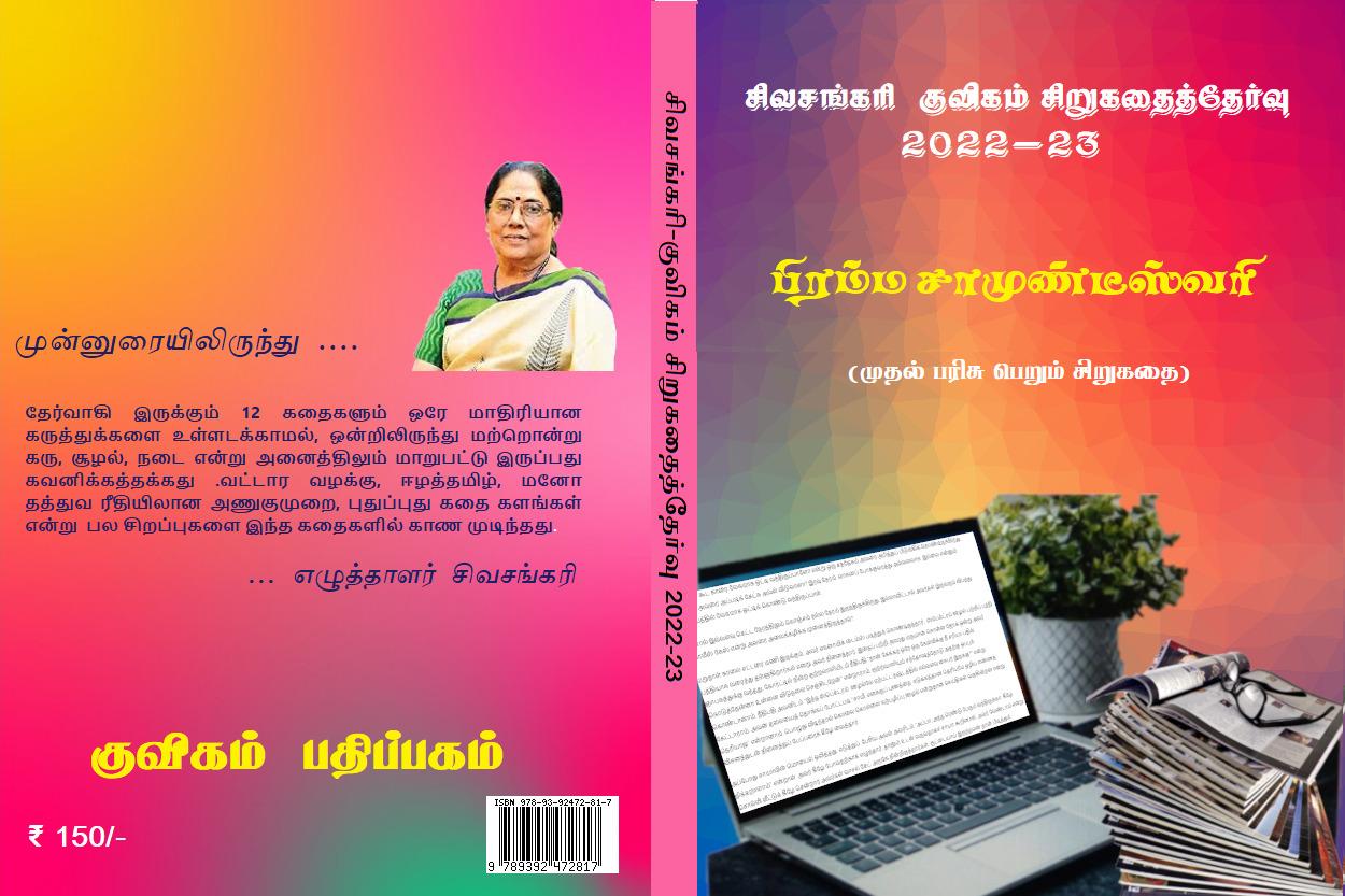 ஜூலை 27, 2023 அன்று, சென்னை, கோட்டூர்புரம் தமிழ் இணையக் கல்விக்கழகம் அரங்கில், ‘சிவசங்கரி குவிகம் சிறுகதைத் தொகுப்பு’ (பிரம்ம சாமுண்டீஸ்வரி) புத்தக வெளியீட்டு விழாவும், பரிசளிப்பு விழாவும் நடைபெற்றது. ‘குவிகம்’ பற்றிய காணொளியைத் தொடர்ந்து, திரு வ வே சு அவர்கள் தலைமையுரை ஆற்ற, பரிசளிப்பும், புத்த வெளியீடும் நடந்தேறின. புத்தகத்தை வெளியிட்டு, பரிசுகளை வழங்கி, சிறப்புரையாற்றிய திருமதி சிவசங்கரி, சிறுகதைகளின் சிறப்பு பற்றியும், சிறுகதைகளுக்கான இலக்கணம் பற்றியும், தன்னை பாதித்த சிறுகதை ஒன்றைப்பற்றியும் பேசினார். தேர்வாகியிருக்கும் 12 கதைகளும் ஒரே மாதிரியான கருத்துக்களை உள்ளடக்காமல், ஒன்றிலிருந்து மற்றொன்று கரு, சூழல், நடை என்று அனைத்திலும் மாறுபட்டிருப்பது கவனிக்கத்தக்கது என்றார். இந்தப் பரிசளிப்பு விழாவில் தானும் பங்கேற்பது குறித்து பெருமைப்படுவதாகக் கூறி, ‘குவிகம்’ குழுமத்திற்கு நன்றி சொன்னார்!