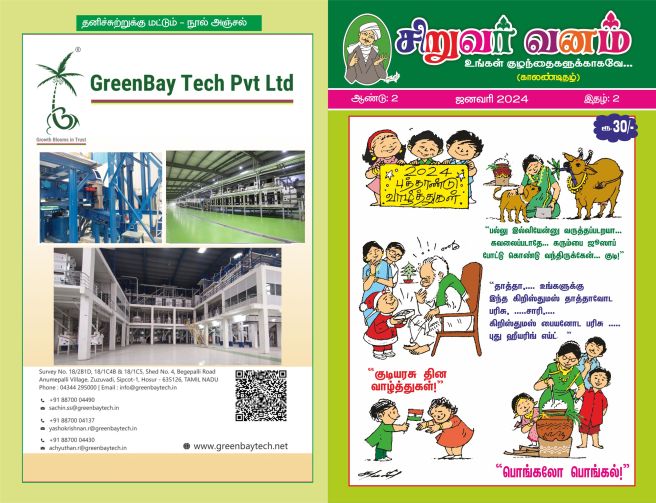 சிறுவர்களுக்கு ஏற்ற கதைகள், நூல்கள்,கட்டுரைகள் , படங்கள், செய்திகள். விளையாட்டுகள் என்று நிரம்பி வழியும் சிறுவர் வனம் ‘ ஜனவரி 2024 காலாண்டு இதழ் நண்பர் சடகோபன் அவர்கள் முயற்சியில் ஒரு சிறந்த சிறுவர் இதழாக பரிமளிக்கிறது .