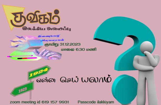 2024 ஜனவரி முதல் குவிகம் மின்னிதழில் சில புதுமையான மாற்றங்கள் கொண்டுவரலாம் என்று யோசிக்கிறோம் !