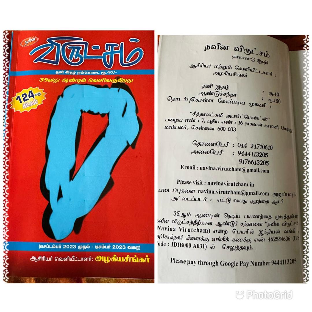 35 ஆண்டுகளாக வெளிவரும் அழகியசிங்கரின் ’ நவீன விருட்சம் ‘ இலக்கிய இதழின் டிசம்பர் 2023 – 124 ஆவது இதழில் வழக்கம் போல் அழகியசிங்கர் தேர்ந்தெடுத்த சிறப்பான கதைகள் , கட்டுரைகள் , கவிதைகள் .