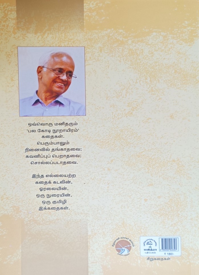 “ஒவ்வொரு மனிதரும் பல கோடி நூறாயிரம் கதைகள். பெரும்பாலும் நினைவில் தங்காதவை. கவனிப்புப் பெறாதவை. சொல்லப்படாதவை. இந்த எல்லையற்ற கதைக் கடலின் ஓரலையின், ஒரு நுரையின், ஒரு குமிழி இக்கதைகள்.”