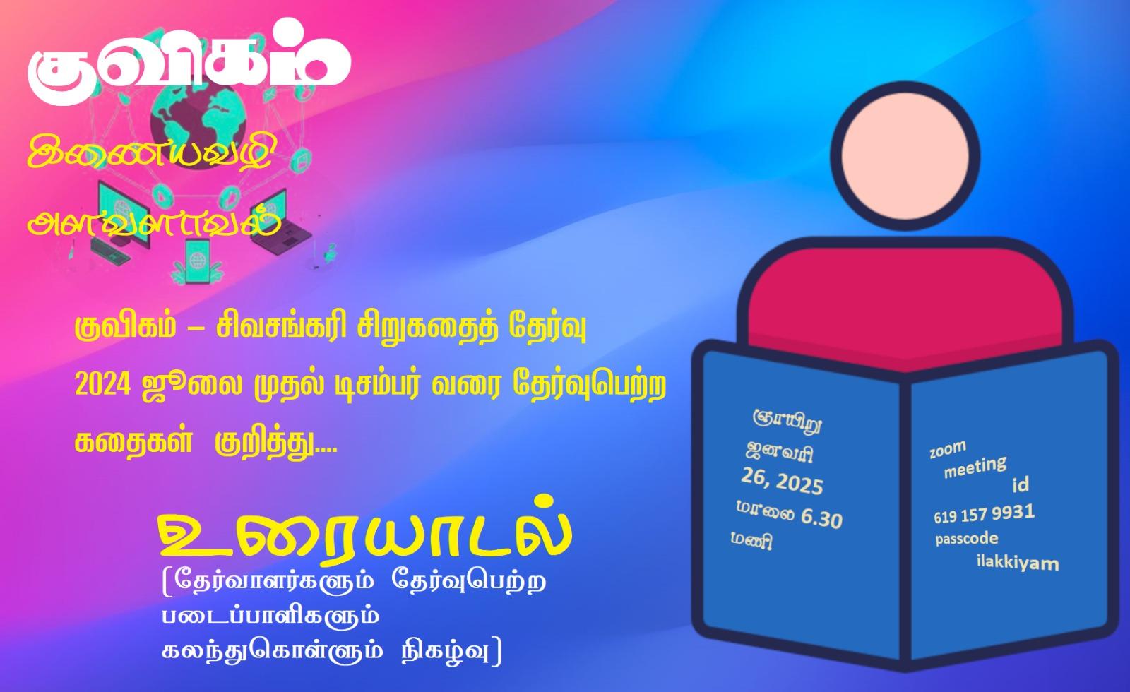 நாகேந்திர பாரதி: மரபுக் கவிதை பாணியிலும், புதுக் கவிதை பாணியிலும் , இசைக் கவிதை பாணியிலும் நமது உறுப்பினர்களின் நயமிக்க கவிதைகளுக்குள் ஒளிந்திருந்த கதைகள் ஒவ்வொன்றும் ஒருவிதம். அவை அனைத்திற்கும் ஆசான் வ வே சு அவர்களின் இலக்கிய நயம் மிக்க மதிப்புரை. நிகழ்வில் கலந்து கொள்ளாதோர் அவற்றை ரசிப்பதற்குக் காத்திருக்க வேண்டும் , காணொளி வரும் வரை. குவிகம் தொகுப்பாகவும் அவை வெளிவர இருக்கின்றன. நன்றி குவிகத்திற்கு.🙏