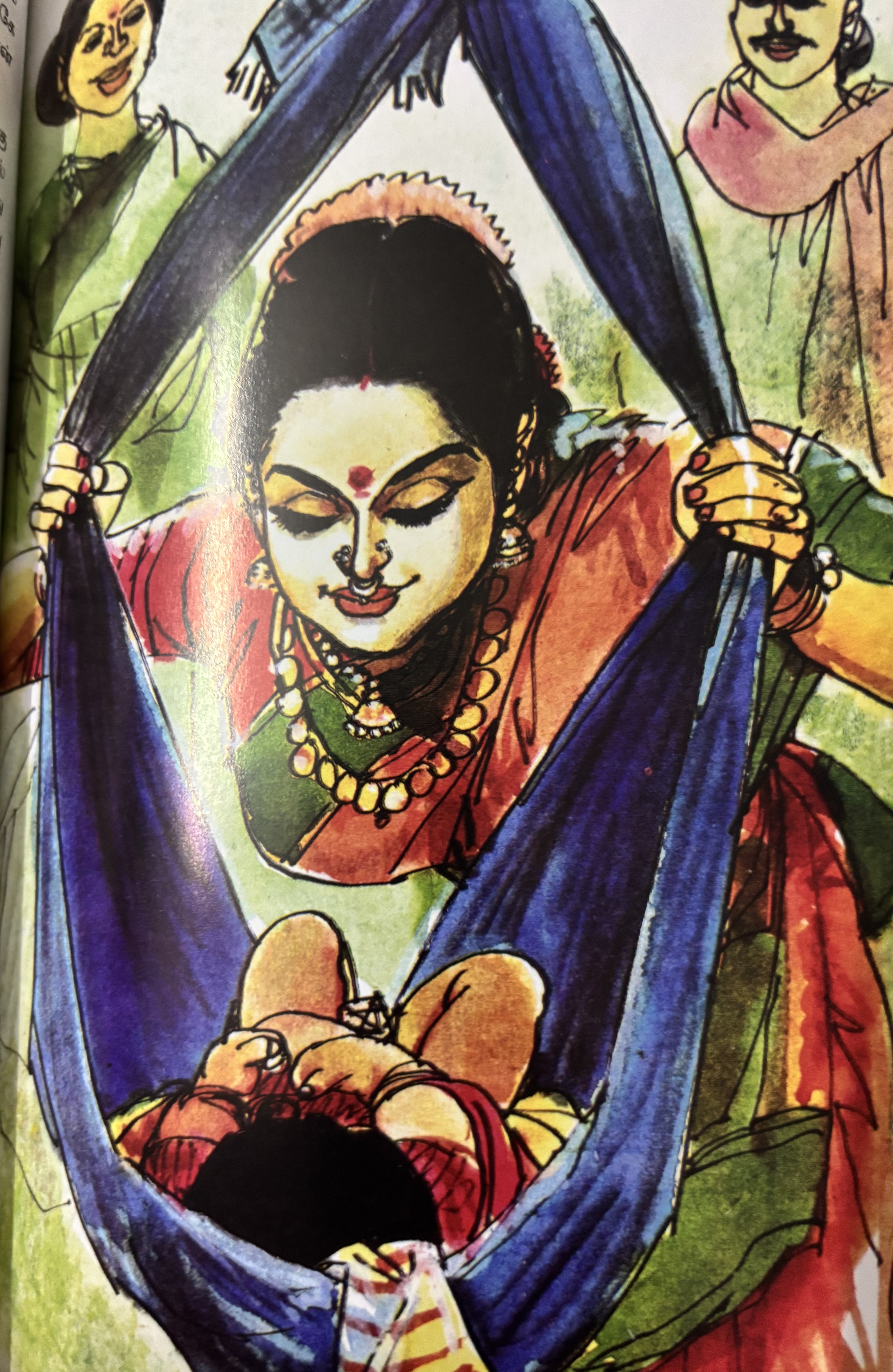 கல்யாணப்பெண் காமுவுக்கு அலங்காரம் செய்து மற்ற பெண்கள் பாடுவது சங்ககாலத் திருமணத்தையே நினைவூட்டுகிறது. வயதில் மூத்த சுமங்கலிகள் குடங்களில் நீர் கொண்டுவந்து அண்டாவில் நிரப்பினர். குழந்தைகள் அதிகம் பெற்றெடுத்த தாய்மாரில் நான்குபேர் அந்த நீரில் ரோஜா இதழ்களையும் நெல்மணிகளையும் போட்டனர். மணப்பெண்ணுக்குச் சந்தனம்பூசி, ‘தீர்க்க சுமங்கலியா இருக்கணும்,’ என வாழ்த்துகின்றனர்.