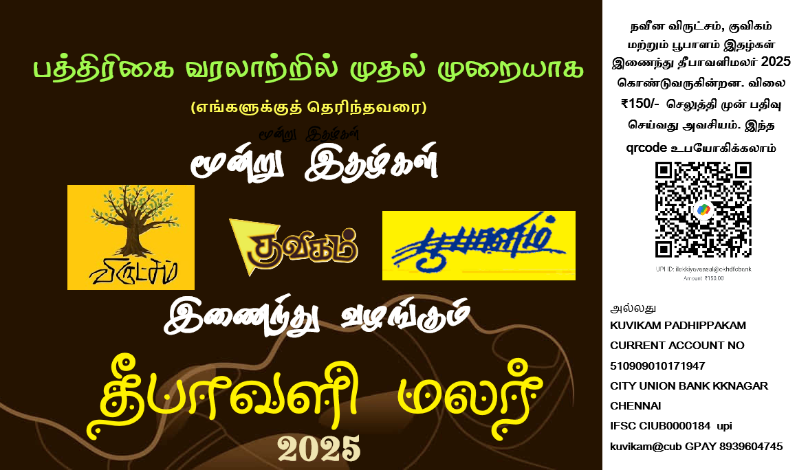 editor@kuvikam.com - ஆகஸ்ட் முதல் டிசம்பர் வரை குவிகம் இதழில் புத்தக விமர்சனங்கள் வெளியாகும் ;
