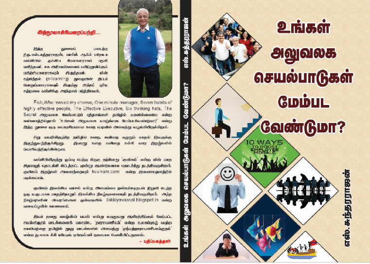 Fish ,who movie my cheese, one minute manager ,7 habits of highly effective People, the effective executive ,six thinking hats ,the secret ஆங்கிலத்தில் இருப்பதுபோல் அலுவலக மேம்பாட்டு புத்தகங்கள் தமிழில் வரவில்லையே என்ற எண்ணத்தில் தான் ,*உங்கள் அலுவலக வாழ்க்கை மேம்பட வேண்டுமா ?*என்ற இந்த நூலை ஒரு சுவாரஸ்யமான கதை வடிவில் அமைத்து வழங்கியிருக்கிறார்.