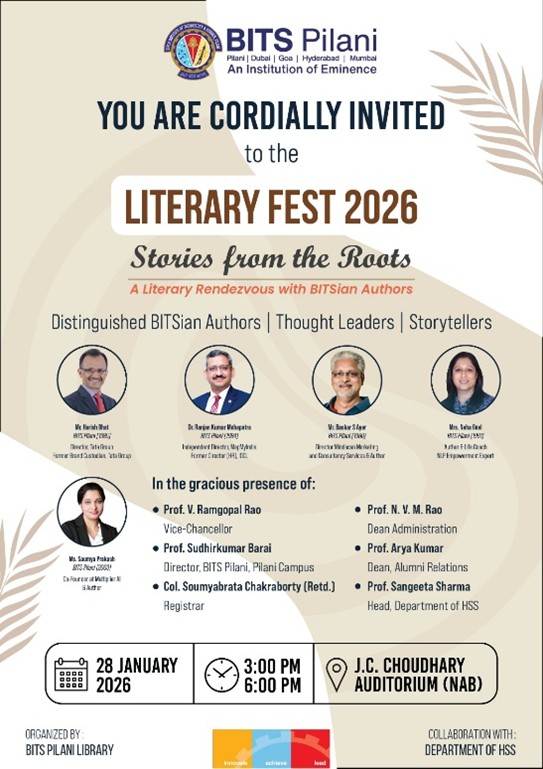 “Stories From The Roots” ( வேர்களிலிருந்து தொடங்கும் கதைகள்) என்ற முழக்கத்துடன் பிட்ஸ் பிலானியில் இந்த வருட இலக்கியத் திருவிழா – பிட்ஸ் பிலானியில் படித்து வெளிவந்து பல துறைகளில் பரிமளித்துக் கொண்டு, அதனிடையே எழுத்துலகத்திலும் தடம் பதித்துள்ள முன்னாள் மாணவர்களைக் கொண்டாடும் நிகழ்ச்சி – விமர்சையாக நடந்தேறியது.