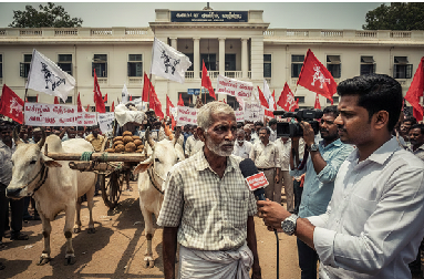 மீண்டும் மாடுசாமியிடம் திரும்பிய நிருபர், “ஐயா… பெட்ரோல், டீசலால் உங்களுக்கு எந்தப் பாதிப்பும் இல்லையே, அப்புறம் ஏன் இந்தப் போராட்டத்துக்கு வந்தீங்க?” என்றார்.