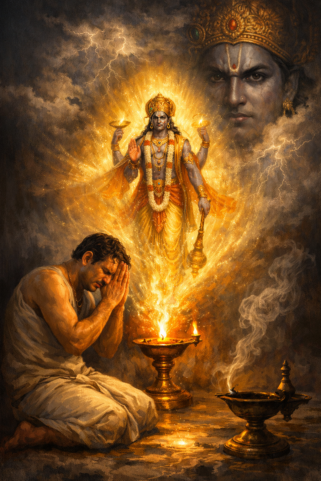 அவர் மனக்கண்ணுக்குள் அந்த ஒளியின் சுடர் காற்றிலே அலைவது போல் இயங்கி அந்தச் சுடரிலே ஒரு உருவம் உருக்கொண்டு அந்த சுடரில் முழுமையாகப் படர்ந்து தெரிந்தது! ஒரு அமாநுஷ்யக் குரல் ஒலிக்கத் தொடங்கியது,